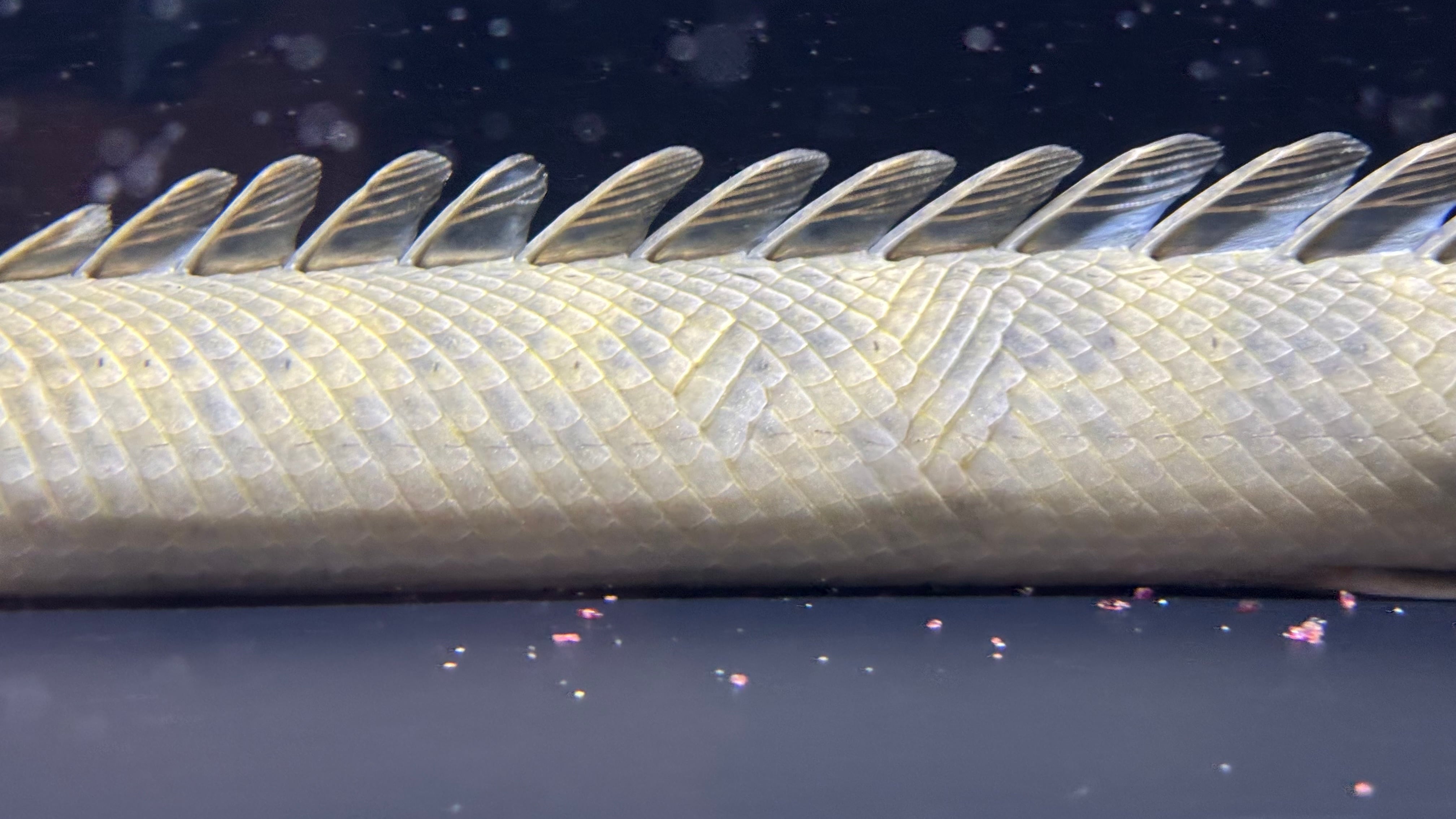 向かって右側の体表に目立つガノイン乱れがあります、ご了承の上ご検討ください。